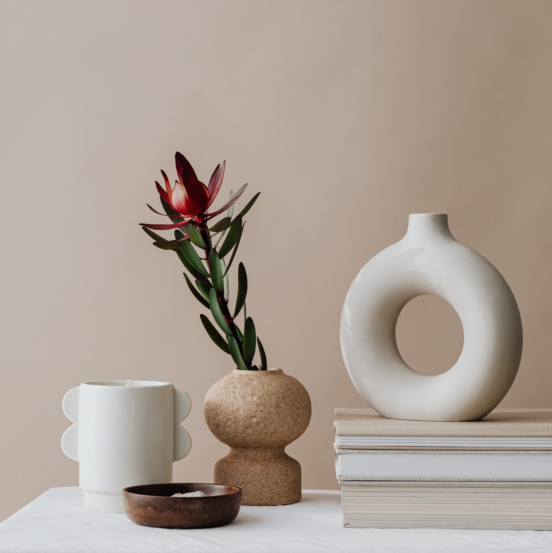 Diese schicke Donutvase eignet sich perfekt für Eukalyptusblätter, getrocknete Blumen oder Pampasgras. Durch ihr elegantes Design bekommt deine Wohnung einen modernen Touch. Diese Donutvase kann auch ohne Blumen etc. verwendet werden. Ihr einzigartiges Design verleiht deinem Zuhause einen stilvollen und künstlerischen Look.